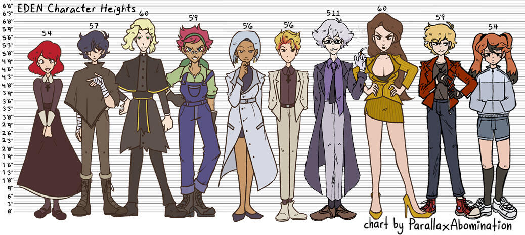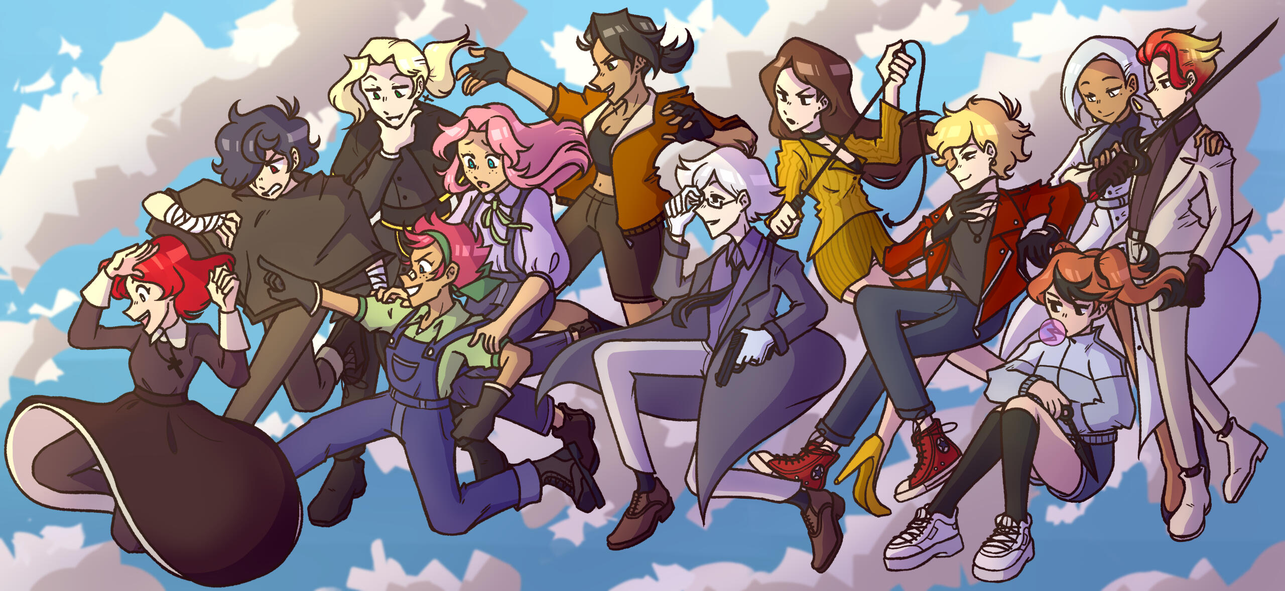 These lineups allow us to see the characters in context with each other, and see if their designs work side by side.In the end, I decided to only give the protagonists costume changes, since we are following their story on Earth, not the antagonists'.Click on the images to enlarge them!