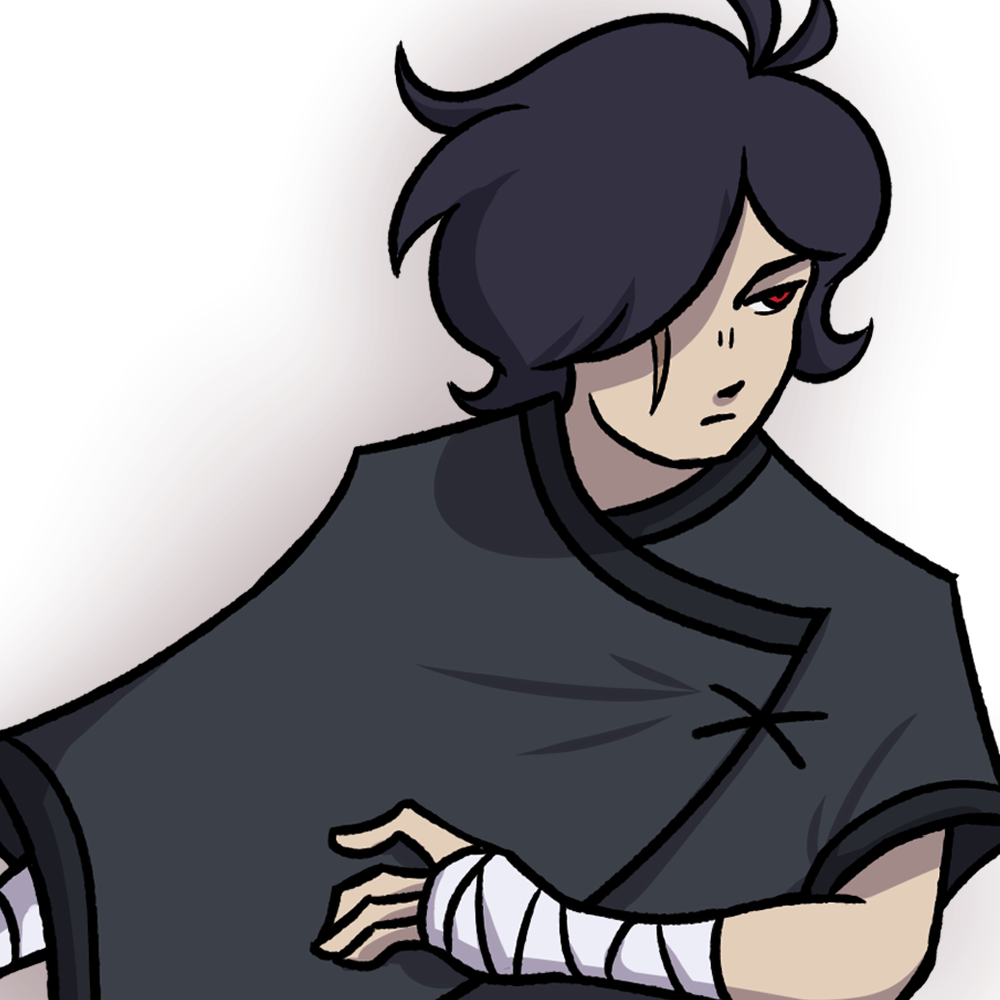 The main goal I wanted to achieve with Abel's design was contrast and cohesion with Cain's. Where she is heart, he is brains. Abel has the same color palette as hers, but inverse. His cuffs are black where hers are white, and his undershirt is black where hers is white, too.Nailing down his silhouette action pose was also tough. I wanted him to feel reserved, but not afraid.