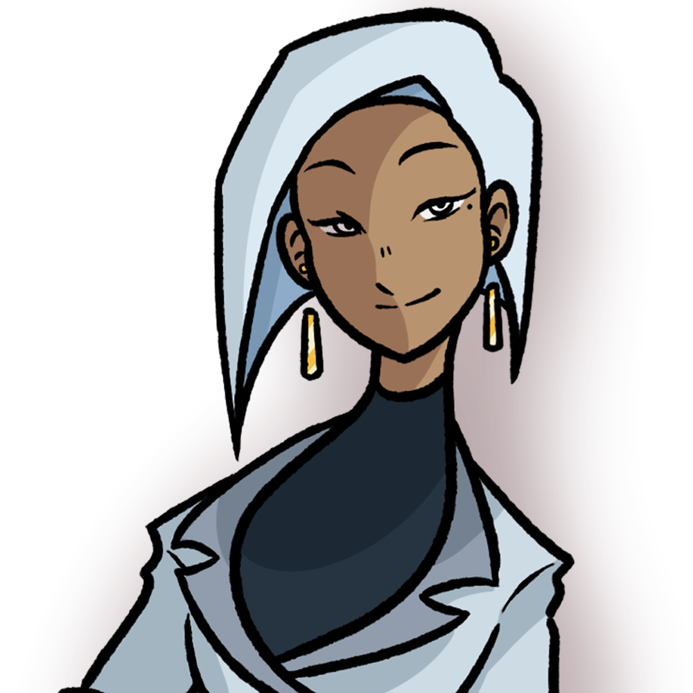 Marie's design was so striking to me, but it still had its flaws. I tried to accentuate her sharp shape language, and I adjusted the hues so that her overall tone was cold instead of warm. The pockets were changed to let the design of the coat flow more naturally, and her skirt was lengthened so that less attention was drawn to it.